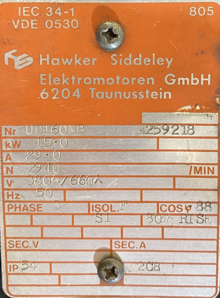 Prezentowany silnik elektryczny trójfazowy marki Hawker Siddeley o mocy 15 kW to sprawdzone rozwiązanie dla wymagających aplikacji przemysłowych. Hawker Siddeley to renomowany brytyjski producent z wieloletnią tradycją w branży elektrotechnicznej, którego maszyny elektryczne słyną z wyjątkowej trwałości i niezawodności. Silnik oferowany jest w stanie używanym, co czyni go doskonałym wyborem dla firm poszukujących ekonomicznych, a jednocześnie wysokiej jakości komponentów napędowych.