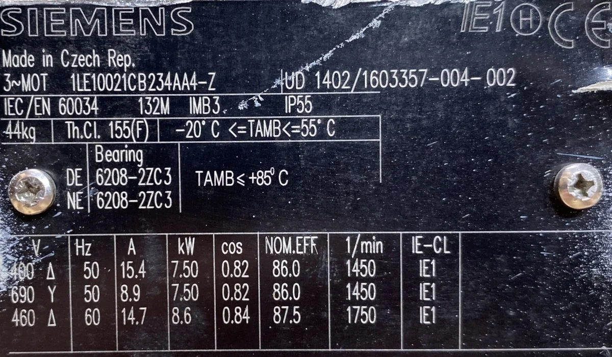 Silnik elektryczny Siemens o mocy 7,5 kW i prędkości obrotowej 1450 obr/min to sprawdzone rozwiązanie dla wymagających zastosowań przemysłowych. Marka Siemens od dziesięcioleci wyznacza standardy w branży napędów elektrycznych, oferując produkty charakteryzujące się wyjątkową trwałością, precyzją wykonania oraz wysoką sprawnością energetyczną. Prezentowany silnik trójfazowy, mimo że pochodzi z drugiego obiegu, zachowuje pełną funkcjonalność i gotowość do pracy w intensywnych warunkach produkcyjnych.